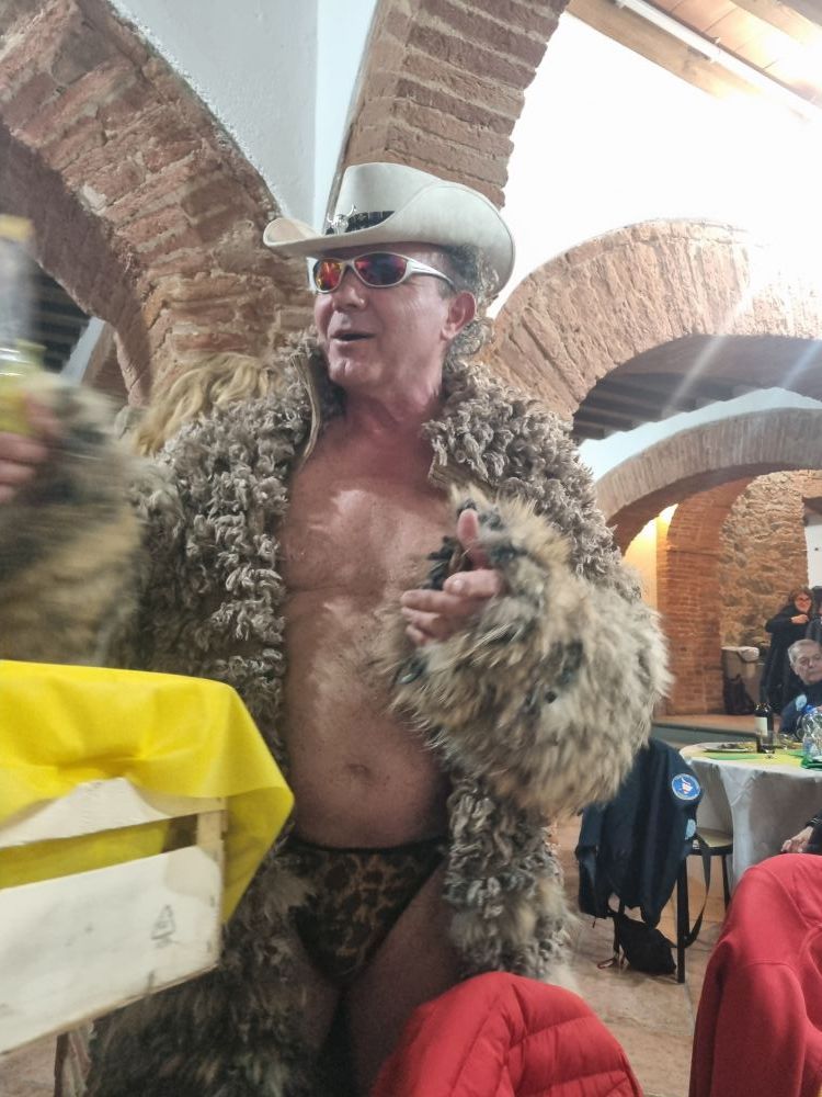 La fine del pranzo è stata allietata dall'ingresso di "Padre Natura" il simpaticissimo nostro vicepresidente Stefano Vivaldi che si è esibito con un costume che sicuramente ha fatto "colpo" fra tutte le Vespiste. Non pioteva mancare il nostro poeta, Antonio Possemato, che ha recitato due poesie in onore delle donne:
